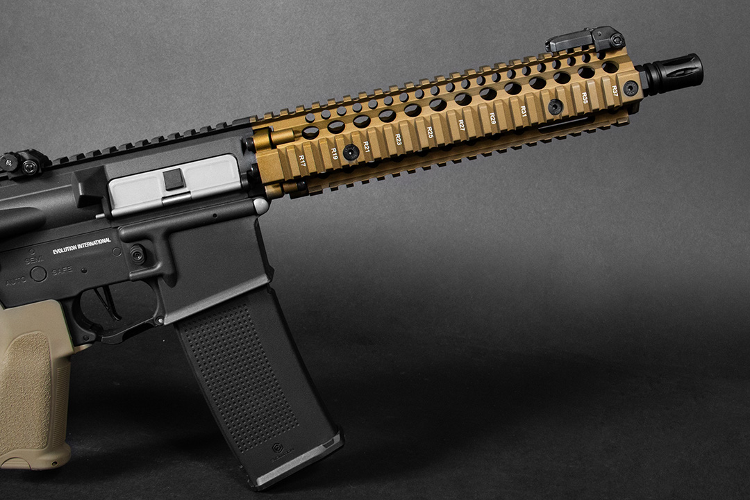 Το ειδικά σχεδιασμένο μπροστινό τμήμα κοντά στο mag-well λειτουργεί ως σταθερό σημείο έλξης για εξαιρετικά γρήγορες επαναφορτώσεις υπό πίεση.