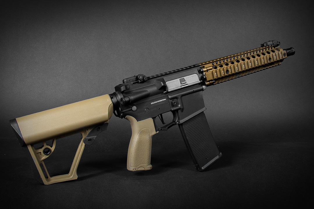 Η προσοχή στη λεπτομέρεια είναι εμφανής σε κάθε εξάρτημα: φινιρίσματα ακριβείας, εσωτερικές ενισχύσεις, σημάδια λέιζερ, ατσάλινες βάσεις για ιμάντες και ενσωματωμένα αναδιπλούμενα σκοπευτικά.