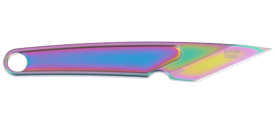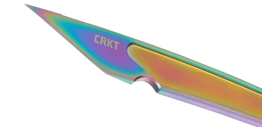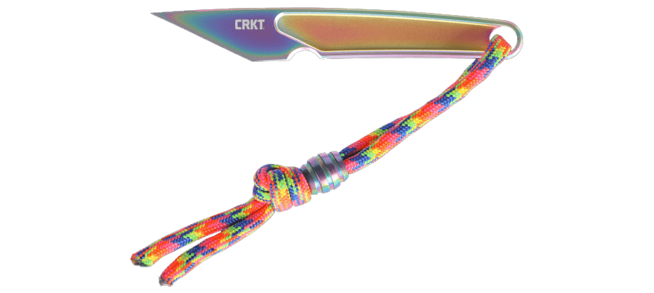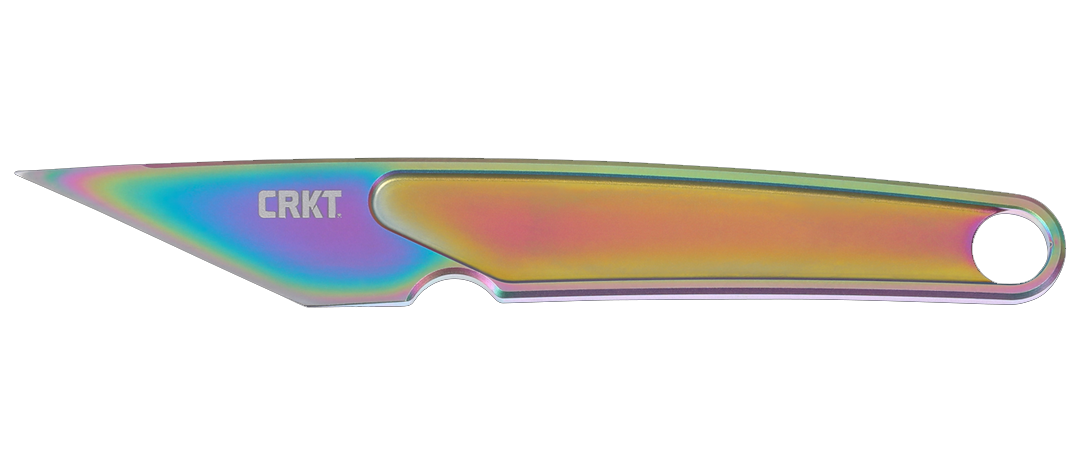 Αυτή η έκδοση του HangTi™ διαθέτει μια ιριδίζουσα επίστρωση νιτριδίου τιτανίου, καθώς και ένα μπρελόκ, κορδόνι και χάντρα σε χρώματα του ουράνιου τόξου, προσφέροντας μια φωτεινή πινελιά χρώματος. Χρησιμοποιούμενη παραδοσιακά στην Ιαπωνία για ακριβείς κοπές στην ξυλουργική και την κλωστοϋφαντουργία, η μορφή της λεπίδας Kiridashi στο HangTi™ καθιστά αυτό το ελαφρύ μαχαίρι ιδανικό για χαράξεις και εργασίες που απαιτούν λεπτή μύτη, ενώ η μύτη σε σχήμα βελόνας είναι εξαιρετική για το άνοιγμα συσκευασιών με φυσαλίδες και για την εύκολη διαχείριση κουτιών αποστολής.