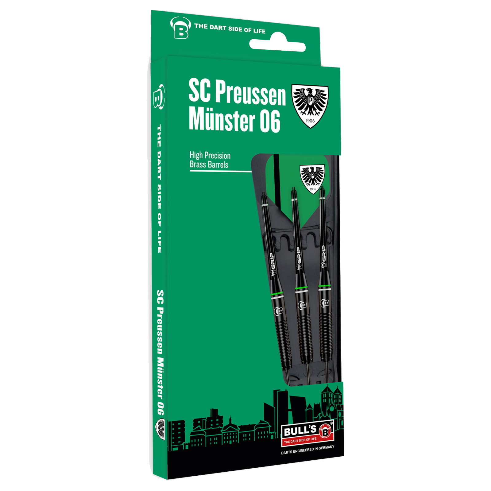 BULL’S Preußen Münster Black Brass Steeldart – διαθέσιμο σε 21g, με το κομψό σχέδιο Preußen Münster.